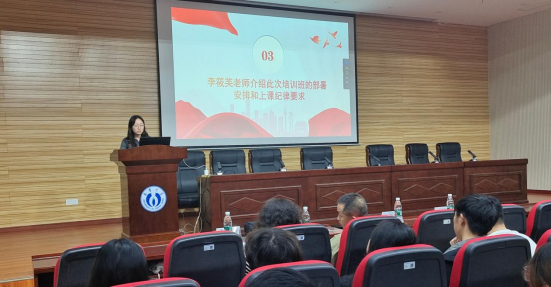 仪式伊始,全体起立,奏唱国歌,激昂的旋律在会场中回荡,点燃了每一位参与者的爱国情怀与责任感,为整场仪式奠定了坚实的情感基调。随后单云丽老师向学员们介绍了此次培训各小组组长及跟组党员名单,明确了组织架构,为培训工作的顺利开展奠定了组织基础。紧接着,李筱芙老师详细介绍了培训班的日程安排、课程规划及纪律要求,为学员们在培训期间的行为规范与学业进步提供了明确的指导方向。
