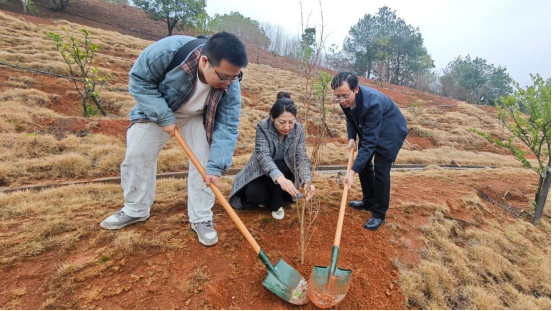 活动现场,师生们热情高涨,干劲十足。大家分工合作,挥锹铲土、扶苗填坑、培土浇水,每一个环节都一丝不苟,现场呈现出一派热火朝天的劳动景象。经过辛勤劳动,一棵棵石榴树苗在山坡上“安家落户”,为初春的校园增添了一抹生机盎然的绿色。