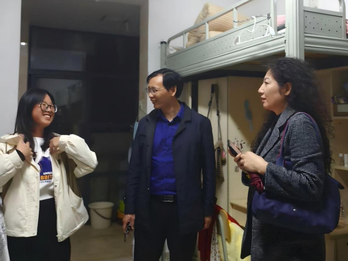 11月2日晚,伟德BV1946党委副书记李国华带领全体辅导员深入学生自习室与宿舍,全面掌握学生动态,深入了解学生学习与生活情况,为同学们送去关怀与鼓励。
