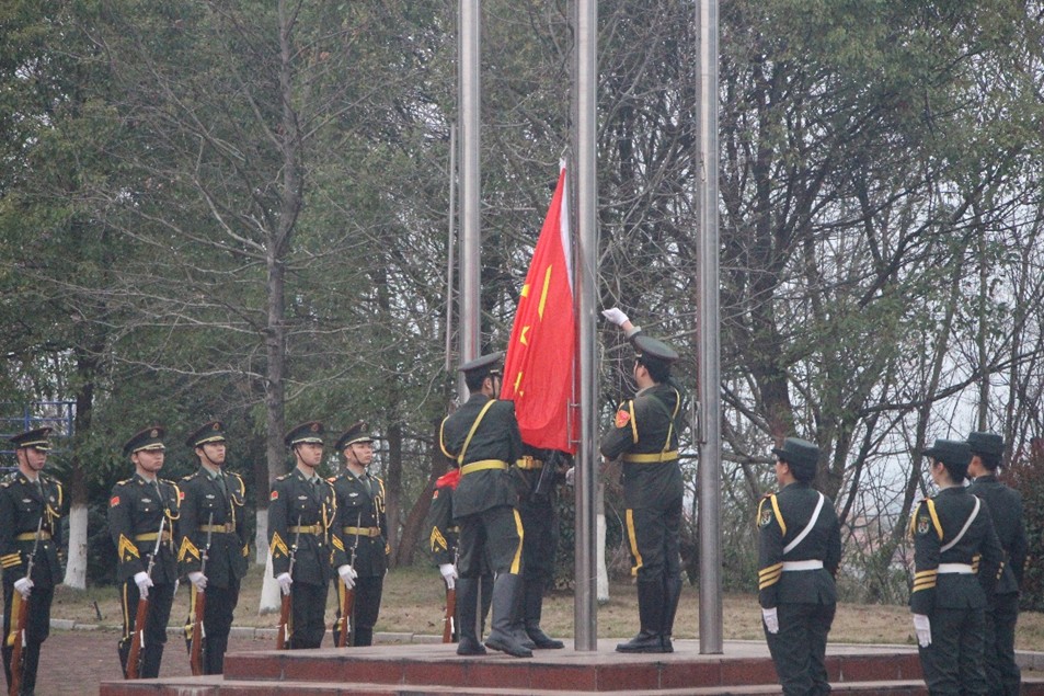 晨光破晓,升旗仪式拉开帷幕,师生们肃立以待。伴随着激昂的国歌声,五星红旗冉冉升起,全体师生面向国旗行注目礼,齐声高唱国歌,用最庄重的姿态表达对祖国的热爱与祝福。