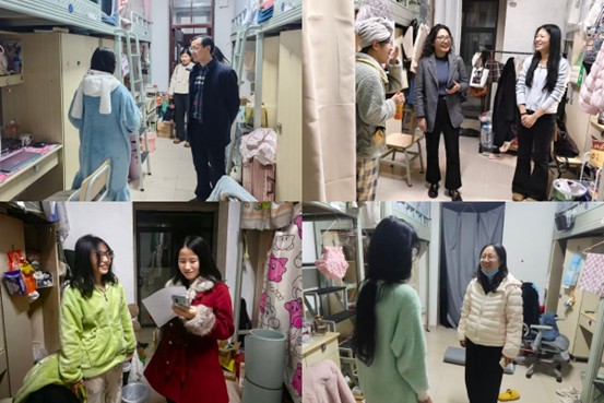 会后,李国华带领全体辅导员,深入学生宿舍进行走访检查。走访过程中,老师们重点检查了宿舍用电安全、消防通道畅通、违规电器使用等情况,并对同学们开展安全教育与引导。同时,了解同学们的思想动态、学习生活困难和实际需求。针对毕业生群体,老师们特别关心其毕业设计与求职进展,督促大家积极把握机会,早日找到一份理想工作。