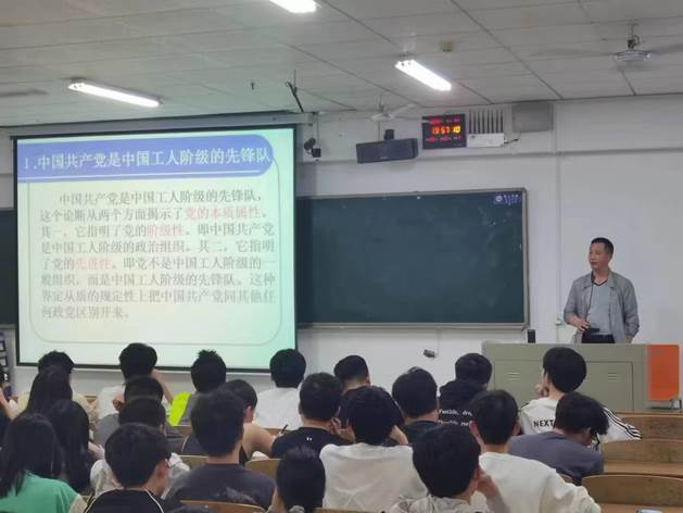 伟德BV19462023年春季入党积极分子培训班开班仪式结束后,由黄坤荣为学员们开讲培训班第一节党课《中国共产党的性质、宗旨和指导思想》。