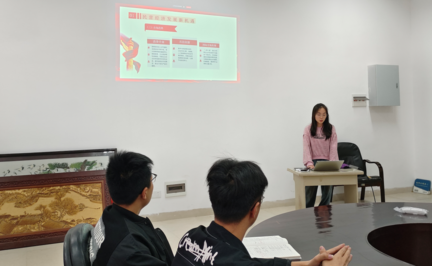 会上,罗竹婷同志围绕“聚焦民营经济,共促发展繁荣”主题展开党课。她指出,民营经济在我国经济中地位重要,是就业与税收的关键力量。并强调,当前的政策环境利好、市场趋势向好、国际市场拓展带来诸多机遇。同时,她也鼓励党员继续发挥先锋模范作用,助力民营经济蓬勃发展。