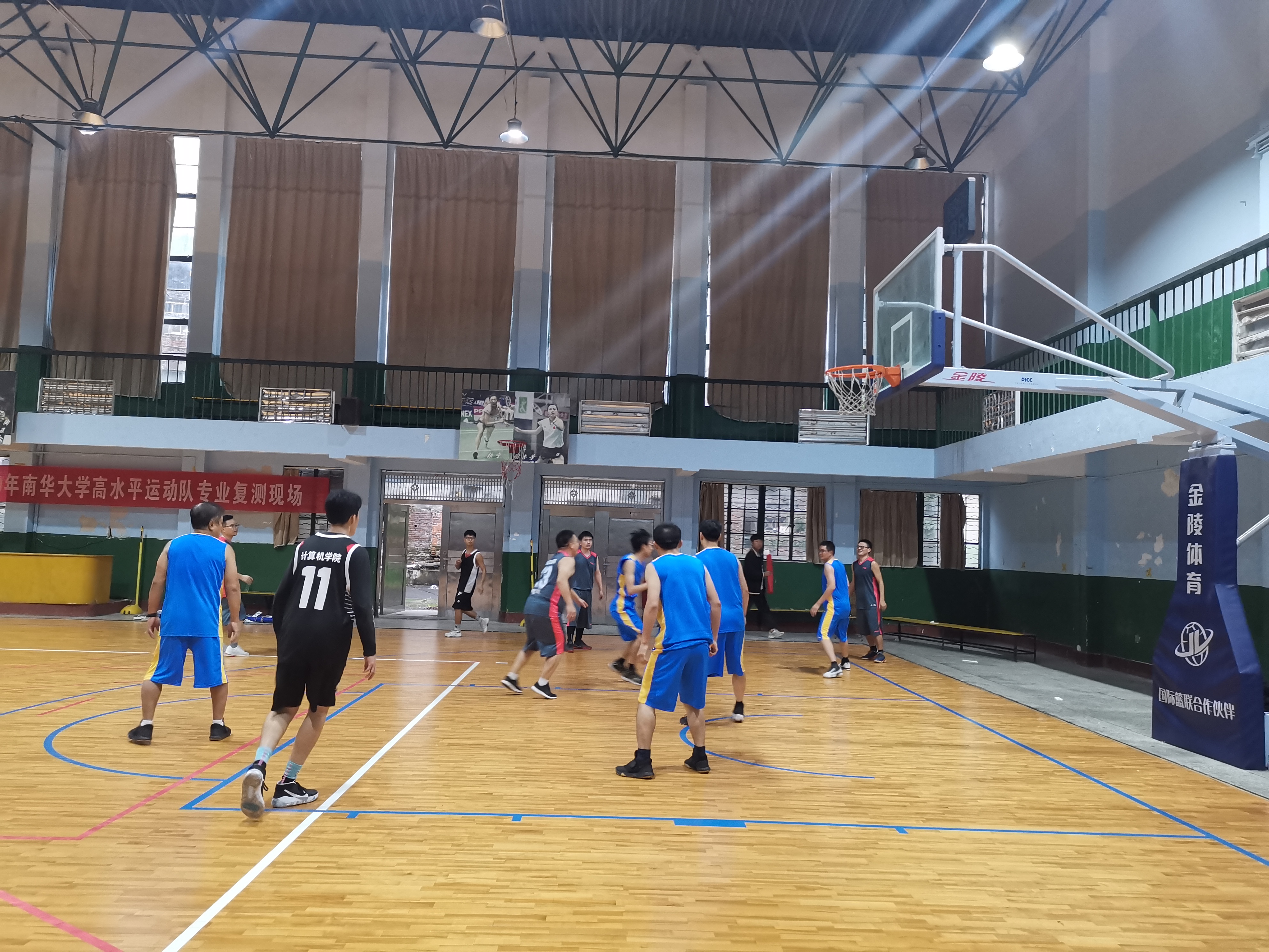 教工篮球队由校友总会会长赵红亲自带队,华星篮球队由计算机长沙校友会陈伍生会长亲自担纲,哨声过后,两个队伍就开始了激烈的比赛。运动场上,大家你来我往,拼搏激烈,超远传球、连续挡拆、滞空跳投层出不穷,各种灵活传球体现出了强大默契,虽说场上各不相让,但比赛氛围却其乐融融,双方之间得分交替上升。赛场上大家尽情发挥球技,赛场下休息时大家交流篮球战术,回忆年少时光,畅谈师生友情,欢歌笑语一直回荡在球场上空。经过四节比赛,比分最终定格在80:71,教工篮球队险胜本场比赛。本次篮球赛既是校庆活动的重要组成部分,也是学校教工运动会的一项重要活动,通过此次活动,架起了校友与老师之间交流互动的桥梁,进一步深化了师生之间的友情。篮球场上教师们当仁不让,展现了老师们明德博学、求是致远的榜样与示范;校友们奋勇进取,展示了他们刚健自强、敢为人先的奋斗精神与争先意识,师生们共同用行动谱写了新时代的南华精神篇章。篮球赛后,校党委副书记阳小华教授亲切接见了全体校友队员。