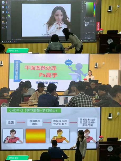 4月16日,1946伟德国际源自英国李望秀老师在全球大型的学分课程运营服务平台“智慧树”上的课程——《平面图像处理——PS高手》的第1次网络直播见面课正式开讲。