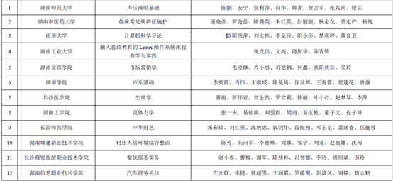2021年湖南省课程思政示范课程、教学名师和团队名单(部分)