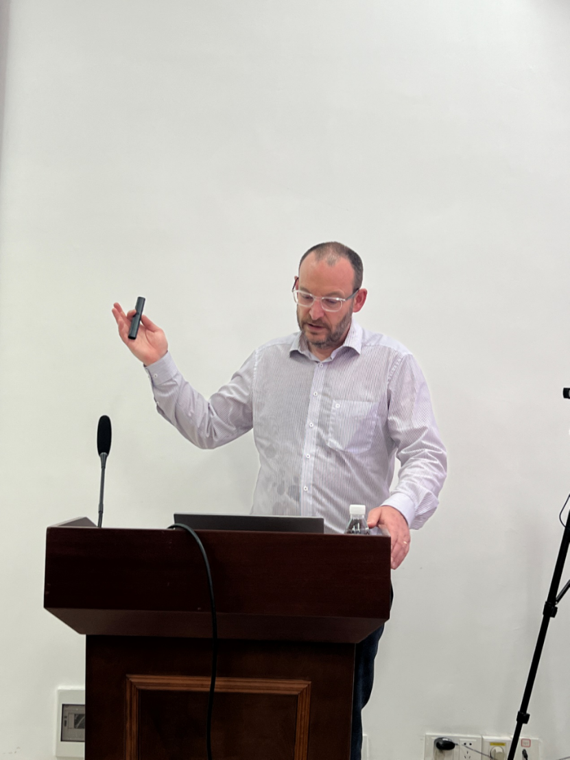 随后,在Chris教授亲切的“你好”声中,本次学术报告正式拉开帷幕。Chris教授全面介绍了研究中心的使命与主题,以及学术产业合作、数据集可用性等方面的内容。他的报告涵盖了人工智能新兴趋势、智能环境中的活动识别、合成数据的应用以及数字孪生案例等重要议题,并探讨了合成数据与真实数据之间的关系,以及基于需求驱动的代理解决方案和边缘计算的潜力。